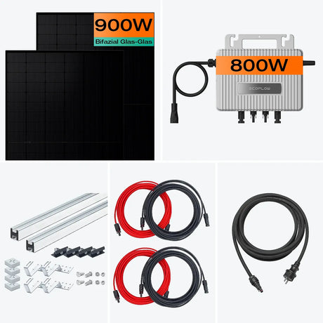 Balkonkraftwerk für Betongeländer (10-15 cm) 800 W, 900 Wp
