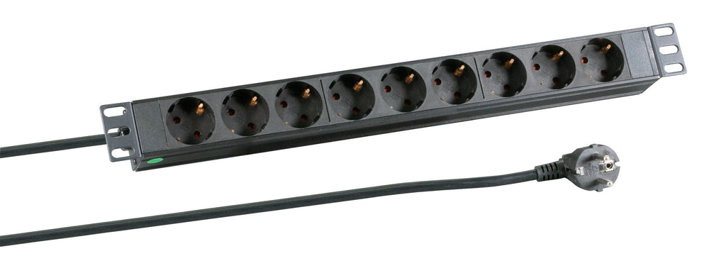19“ 1HE Steckdosenleiste 9 x CEE 7/3 ohne Schalter, im Kunststoffprofil, schwarz Stück