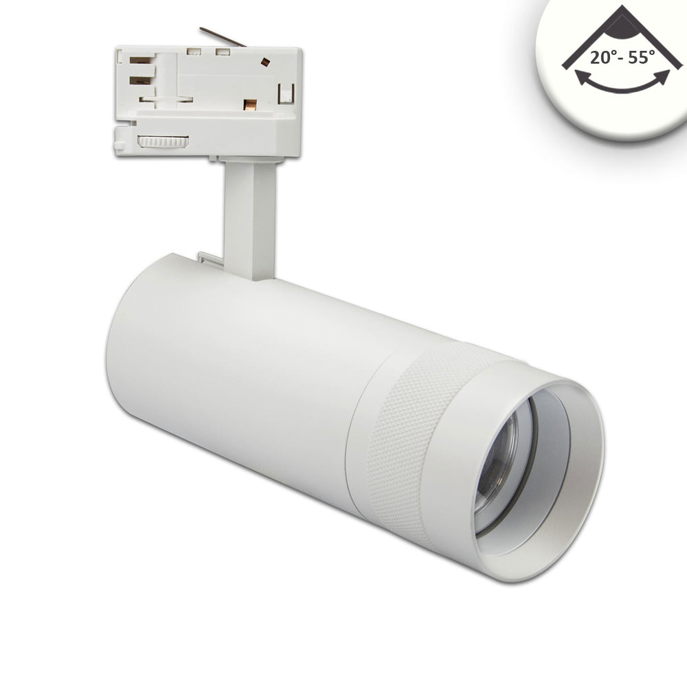 3-Phasen Schienen-Strahler fokussierbar, 24W, 20°-55°, weiß matt, 4000K