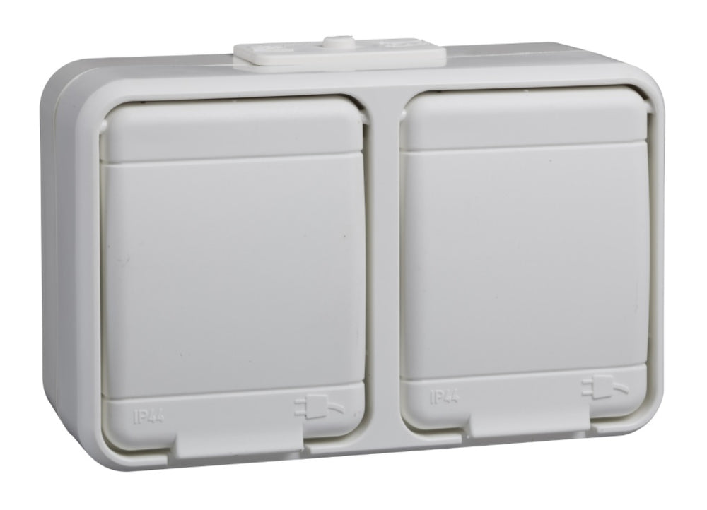 AP IP44 2-fach Steckdose waagrecht, Steckklemme, reinweiß