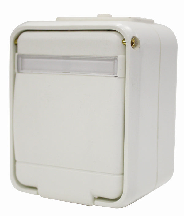 AP IP44 Steckdose mit Schriftfeld, Steckklemmen, reinweiß