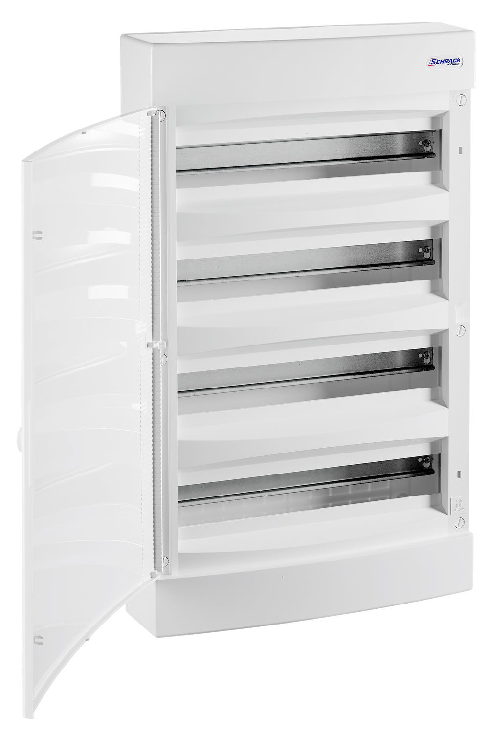 AP-Wohnungsverteiler 4-reihig, 72TE, IP40, weiße Tür ist auf Lager und wird versandt, sobald es wieder verfügbar ist