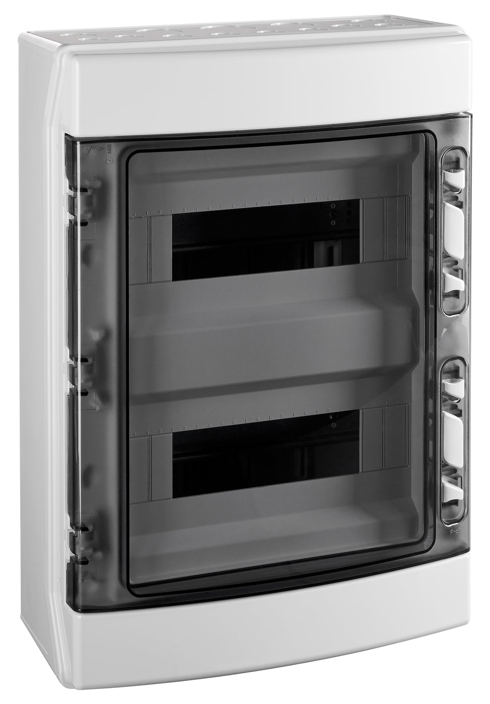 Aufputzverteiler 2-reihig, 24TE, IP65, transparente Tür