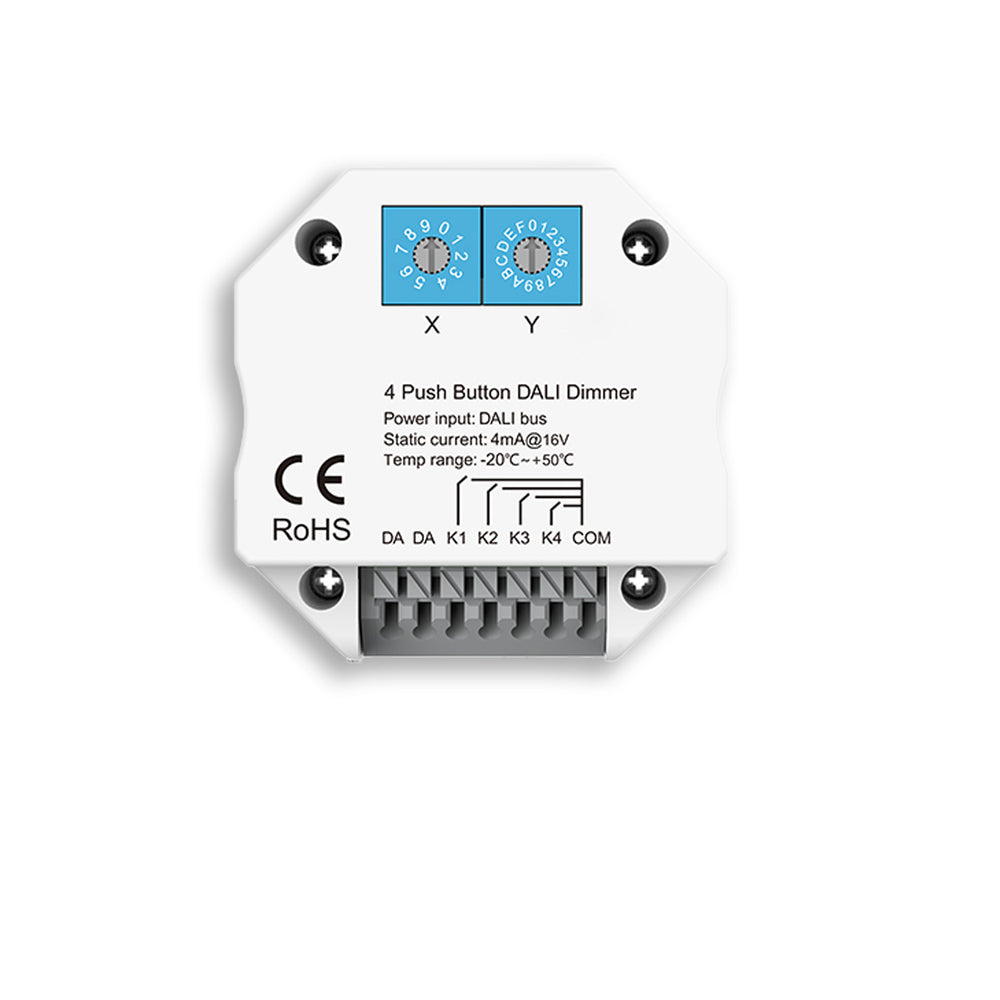 DALI Master-Steuerung für 4 Adressen/Gruppen/Szenen, Steuerung via 4 Push-Taster, DALI-Bus Spannung ist auf Lager und wird versandt, sobald es wieder verfügbar ist