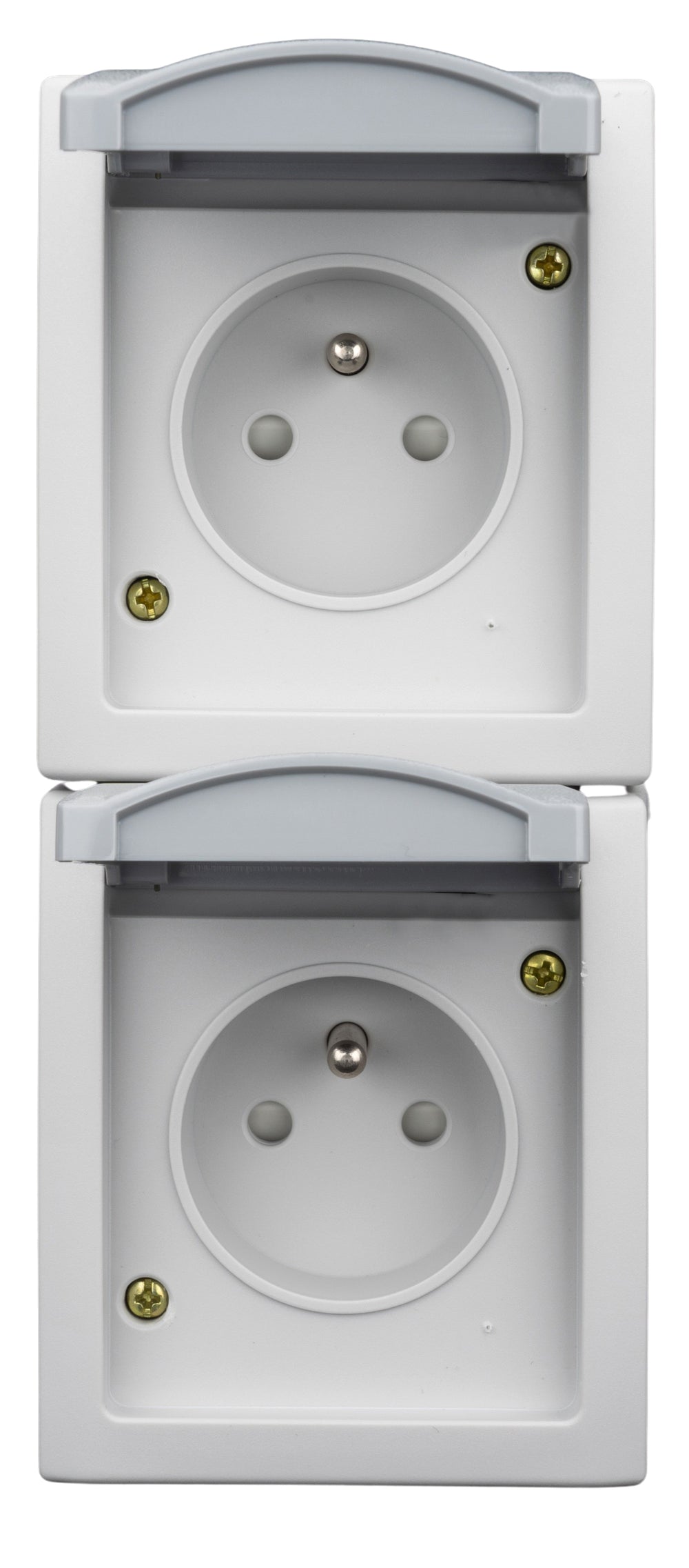 - BEZEICHNUNG2: Vertical combination 2 fold socket with earthed pin socket and child protection