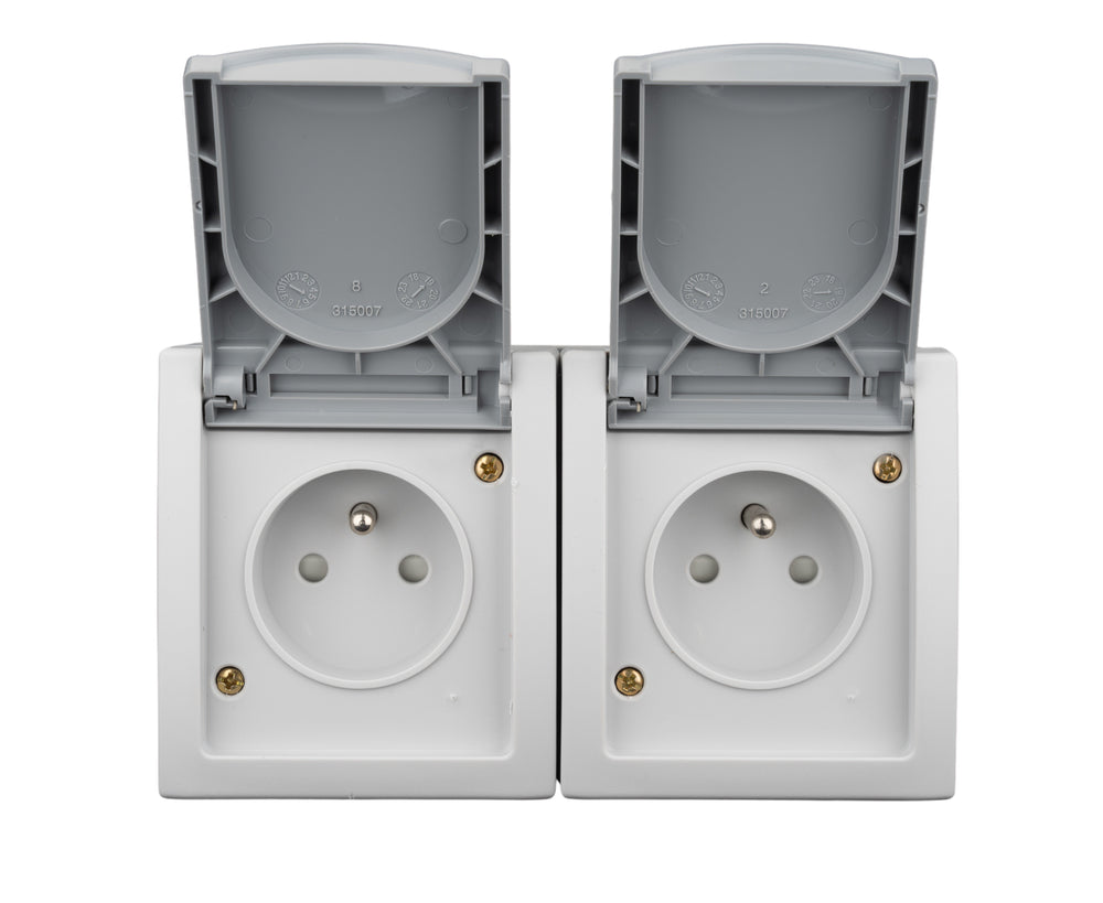 - BEZEICHNUNG2: Horizontal combination 2 fold socket with earthed pin and child protection