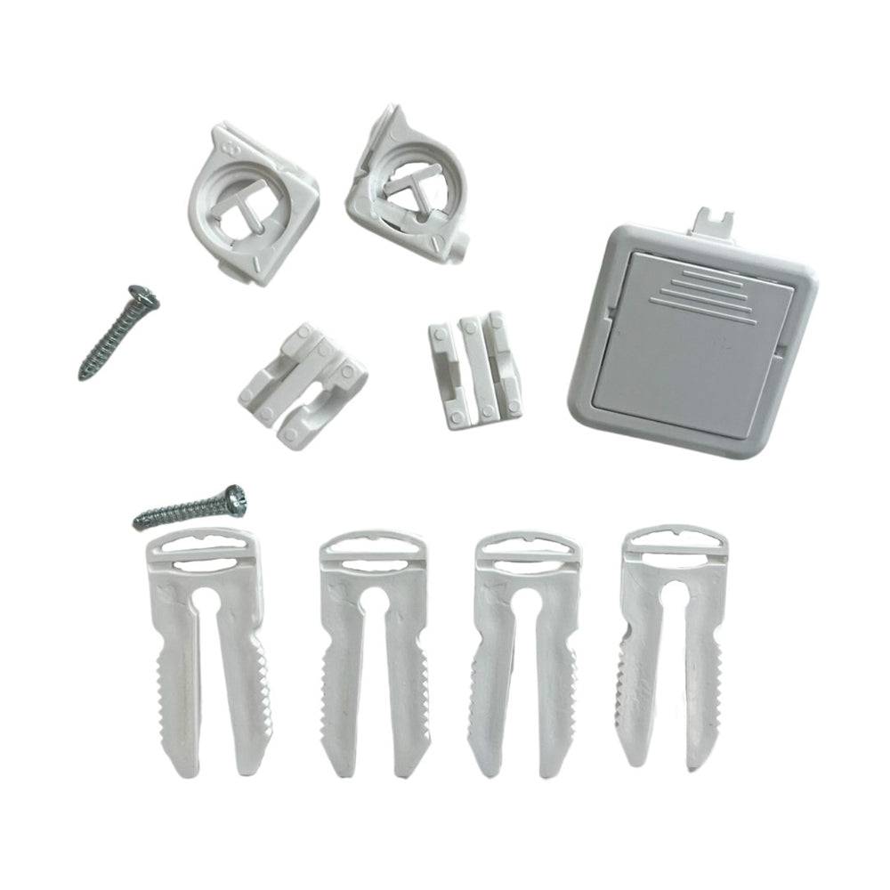 bestehend aus: 1x Türclip, 2x Türscharniere, 1x 6-Punkt Rahmenbefestigung, 2x Schrauben für Gerätefrontabdeckung
