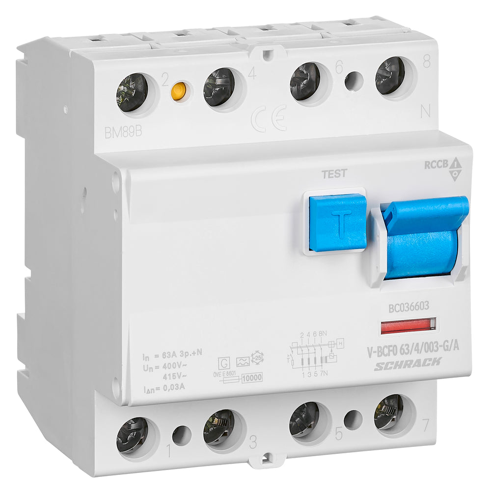 FI-Schalter, 63A, 4-polig, 30mA, vsf., Bauart G, Typ A