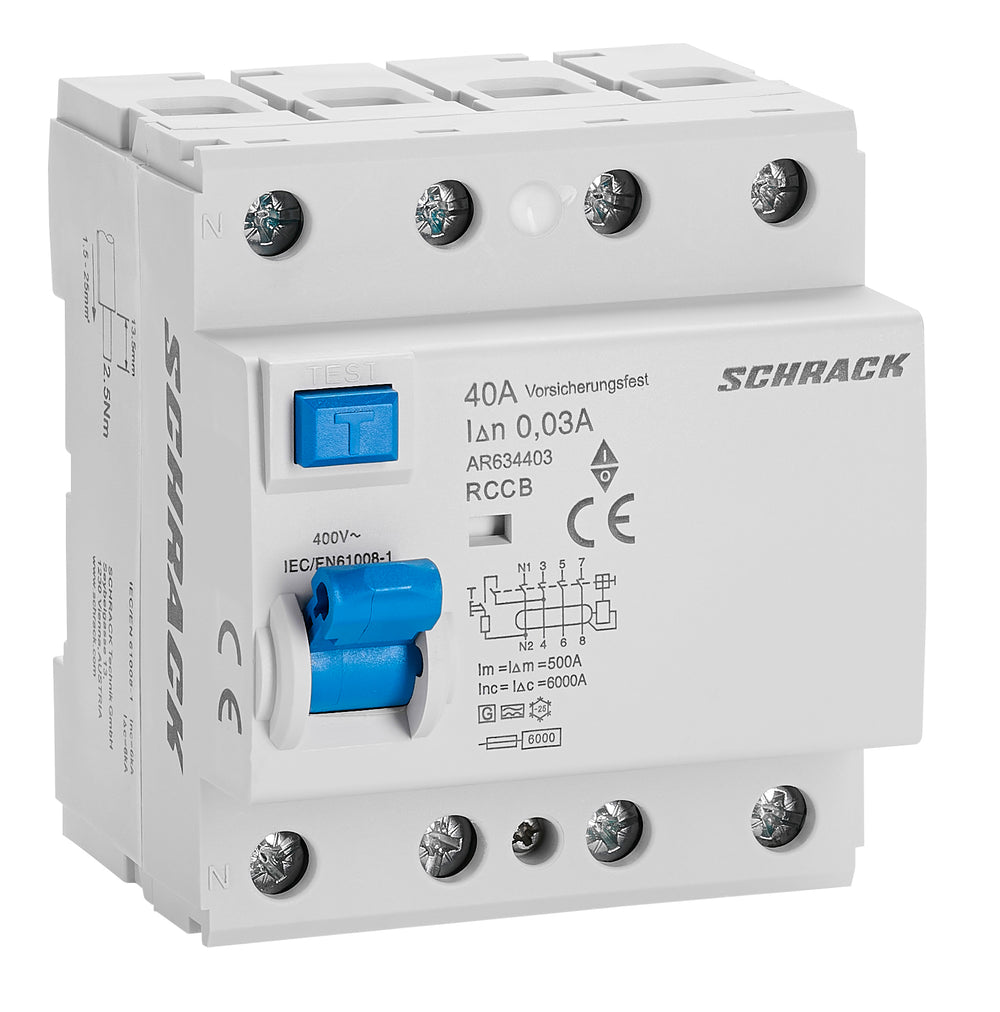 FI-Schalter 40A 4-polig 30mA G/A vorsicherungsfest (vsf)