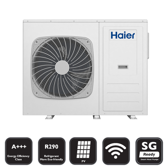 Die Haier HPM12-Nd2 vereint leistungsstarkes Heizen, präzises Kühlen und nachhaltige Warmwasserbereitung in einem platzsparenden Monoblock-System. Mit dem natürlichen Kältemittel R290, einer Energieeffizienzklasse A+++ und einem hervorragenden COP-Wert von bis zu 4,90 eignet sie sich ideal für energieeffiziente Neubauten und Modernisierungen.