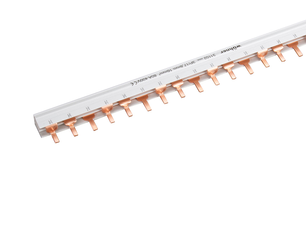 Kammschiene 3-polig, 16mm², 80A, Teilung 18mm, 1m lang