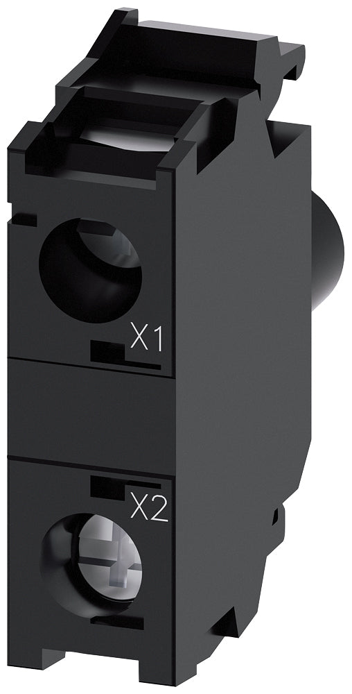 LED-Modul mit integrierter LED AC 230 V, weiß, Schraubanschluss, für Frontplattenbefestigung LED-Modul SIRIUS ACT zur Beleuchtung der Befehls- und Meldegeräte SIRIUS ACT mit brillianter Leuchtkraft dank energieeffizienter LED-Technologie. Unter dem Markennamen SIRIUS ACT bietet Siemens ein einzigartiges Portfolio an Befehls- und Meldegeräten mit weltweiten Produkt-Zulassungen in drei modernen Designreihen aus robustem Echtmetall und hochwertigem Kunststoff.Das innovative Aufschnappkonzept vereinfacht die Montage so weit, dass dafür nur eine Hand und kein Spezialwerkzeug erforderlich ist. Als Montagebohrungen genügen nutfreie Löcher, da bereits ein 100%iger Verdrehschutz integriert ist.Dank der durchgängig hohen Schutzart sind die robusten Geräte industrietauglich und für den Außeneinsatz geeignet. Sogar die Reinigung mit Hochdruckstrahl ist möglich. Weder Staub, Öle noch aggressive Laugen können den zuverlässigen Betrieb stören.Neben der Standardverdrahtung können die meisten Geräte auch über PROFINET, AS-Interface oder IO-Link an die Steuerung angebunden werden. Damit reduzieren Sie Ihren Verdrahtungsaufwand, minimieren Fehlerquellen und gewinnen mehr Flexibilität.Komfortabel unterstützt der grafische Online-Konfigurator bei Auswahl und Bestellung von Einzelgeräten, Gehäusen und Beschriftungen. Umfangreiche Dokumentation (z.B. Handbuch, 3D-Daten, Anschlussdiagramm) ist verfügbar. Lieferbare Ausführungen: mehrere Farben, verschiedene Spannungsvarianten, verschiedene Anschluss- bzw. Montagearten. SIRIUS ACT - Performance in Action beim Befehlen und Melden. Einfach montiert, einfach stark, einfach perfekt.