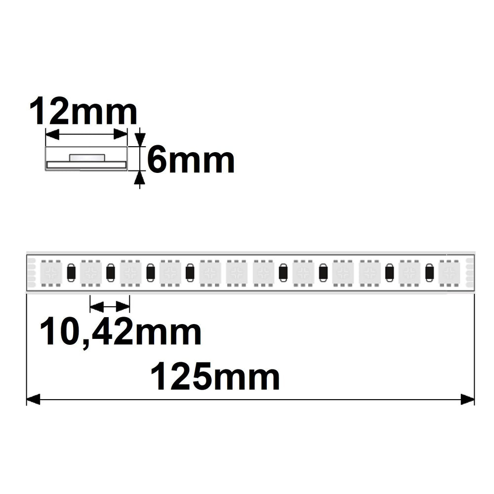 Trennstelle: 125mm mit je 12 SMD | Pitch (Lichtpunkt Mitte-Mitte): 10,42mm | 1 Einheit (Rolle) = 20m | max. Flexbandlänge pro Einspeisung: 20m | Längentoleranz + Wärmeausdehnung: 1% | kein Kühlprofil erforderlich | inkl. 3M VHB Klebeband | Untergrund vor dem Ankleben reinigen und entfetten! Nicht wieder ablösen! | Silikon Verguss | BESONDERHEIT: Anschlusskabel einseitig