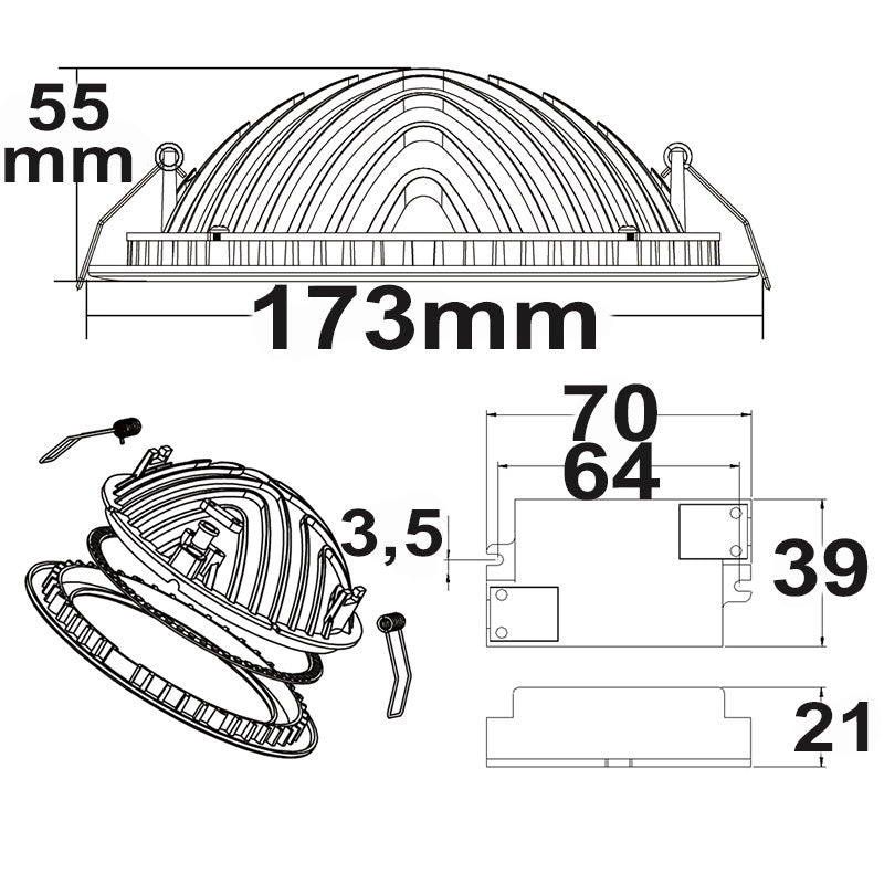 inkl. externer TÜV/EMC zertifizierter Trafo, 350mA, Trafomaße: L=112, B=40, H=26