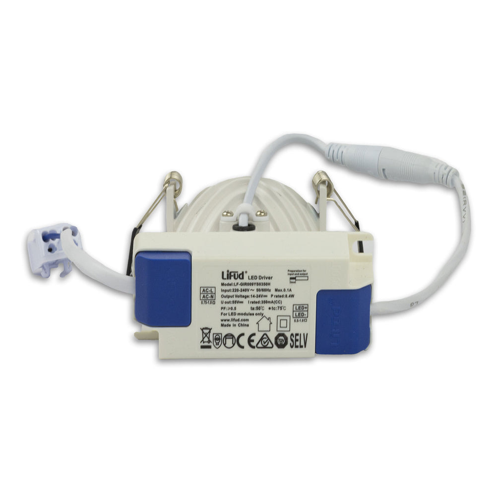 inkl. externer TÜV/EMC zertifizierter Trafo. Maße Trafo:96x37x22mm (350mA/14-24V DC)