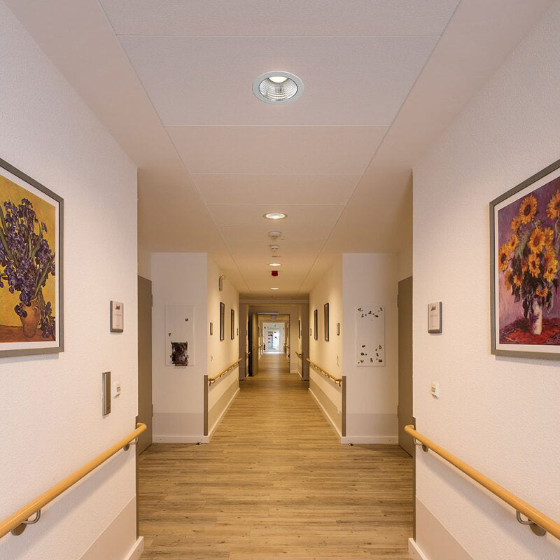 Blendfreies Leuchtendesign (UGR Facierter Multi-Reflektor sorgt für gleichmäßige Ausleuchtung Werkzeugloser Klemmenanschluss (durchverdrahtbar mit integrierter Zugentlastung) Spritzwassergeschütztes Gehäusedesign (IP 54 Frontseitig) SmartCooling: raumseitige Wärmeableitung durch Aluminiumreflektor Abstandsfreie Montage zur Dämmung möglich Für Zentralbatterie geeignet COLORselect: 3 Lichtfarben in einer Leuchte: 3000K, 4000K und 5700K. Für jede Anwendungsumgebung die passende Lichtfarbe einstellbar.