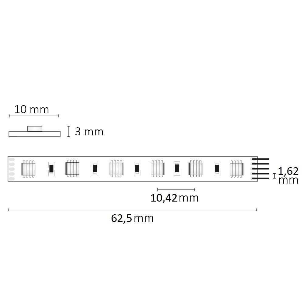 Trennstelle: 62,5mm mit je 6 SMD | Pitch (Lichtpunkt Mitte-Mitte): 10,42mm | 1 Einheit (Rolle) = 5m | max. Flexbandlänge pro Einspeisung: 5m | Längentoleranz + Wärmeausdehnung: 1% | erforderliche Kühlmasse min. 75 gr/m | inkl. 3M 300LSE Klebeband | Untergrund vor dem Ankleben reinigen und entfetten! Nicht wieder ablösen! | BESONDERHEIT: Anschlusskabel beidseitig