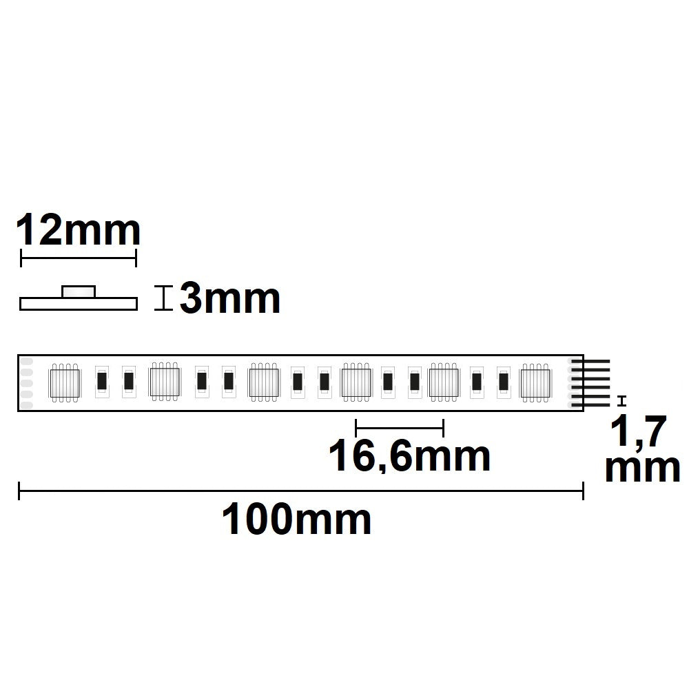 Trennstelle: 100mm mit je 6 SMD | Pitch (Lichtpunkt Mitte-Mitte): 16,67mm | 1 Einheit (Rolle) = 5m | max. Flexbandlänge pro Einspeisung: 5m | Längentoleranz + Wärmeausdehnung: 1% | erforderliche Kühlmasse min. 75 gr/m | inkl. 3M 300LSE Klebeband | Untergrund vor dem Ankleben reinigen und entfetten! Nicht wieder ablösen! | BESONDERHEIT: Anschlusskabel beidseitig