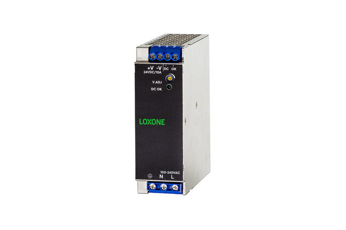 Hutschienen-Schaltnetzteil zur Versorgung von 24V Geräten Ideal geeignet zur Spannungsversorgung von größeren Lasten wie z.B. einem Audioserver mit Stereo Extensions oder größerer Beleuchtungsgruppen mit Weitbereichseingang von 100-240 V AC ermöglicht Ausgangsspannung 24V DC mit bis zu 240W (anpassbar) mit hohem Wirkungsgrad und Status-LED einfache Montage auf der Hutschiene nach EN50022, 35mm, Gehäuse 41mm breit Schraubklemmen für die Spannungsversorgung, Ausgangsspannung und Erdung
