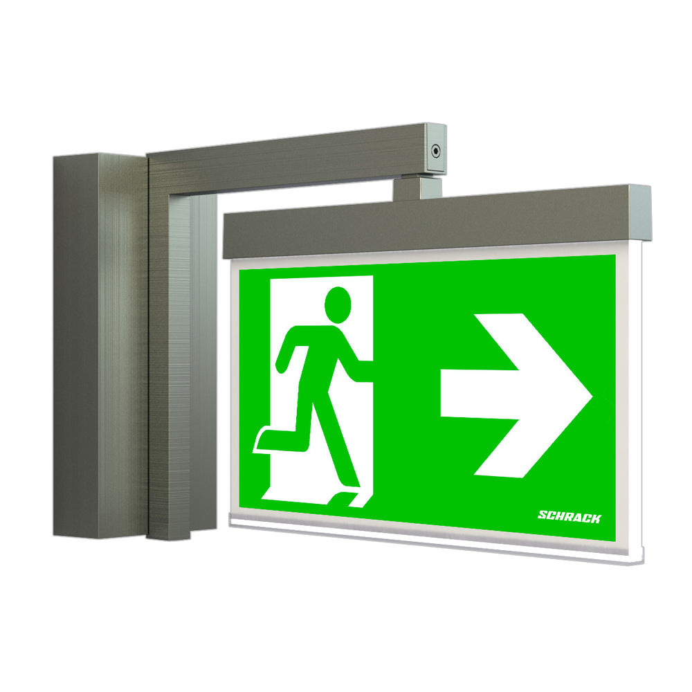 Notleuchte AM Edelstahloptik, Wandanbau mit Ausleger