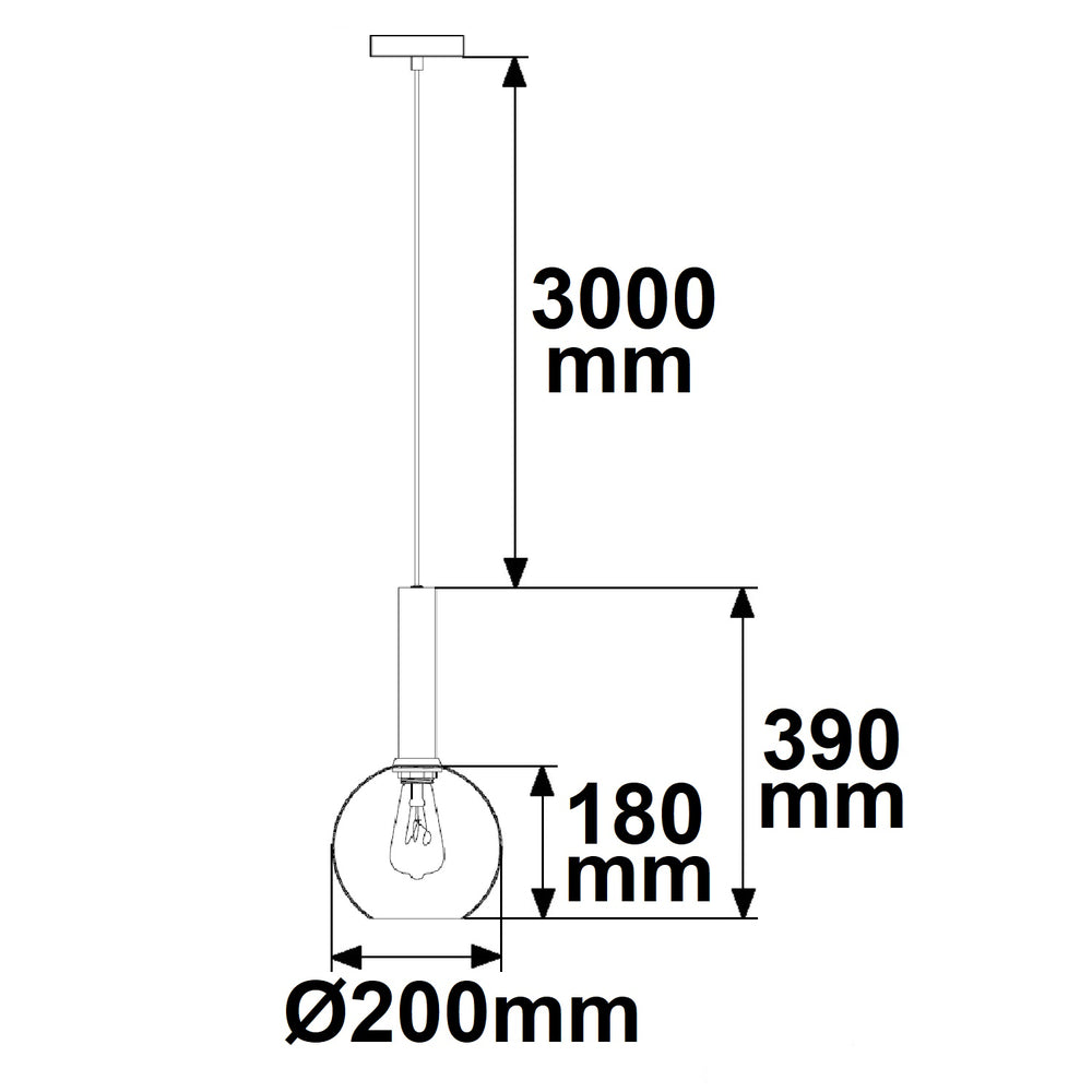 Pendelleuchte, amber round Glas, E27, 20cm, 50-300cm, exkl. Leuchtmittel, exkl. Baldachin
