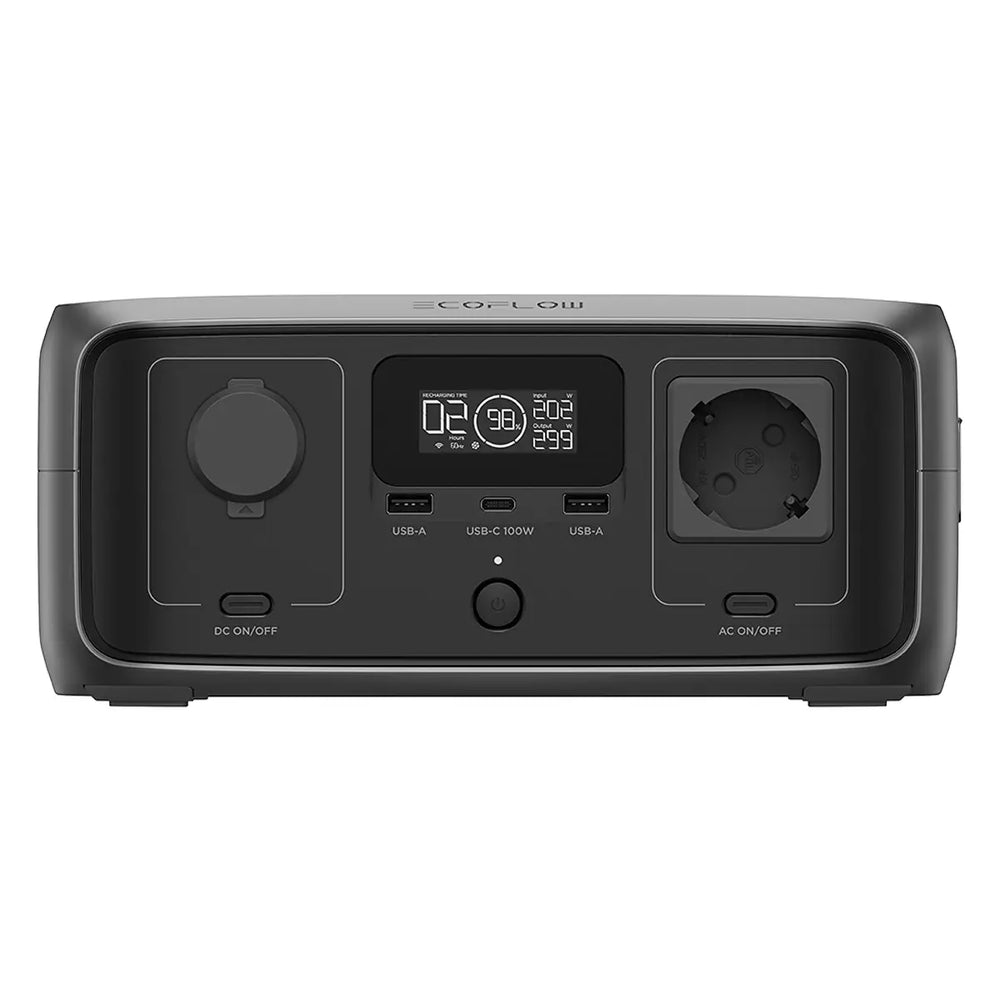 Merkmale & Vorteile der River 3 Powerstation Kompakte Größe, maximale Leistung – besonders geeignet für unterwegs und zu Hause Die EcoFlow RIVER 3 Serie bietet eine ideale Kombination aus Portabilität und Leistungsfähigkeit. Mit einer Größe von nur 255 x 212 x 113 mm und einem Gewicht von lediglich 3,55 kg ist sie extrem kompakt und leicht genug, um sie überallhin mitzunehmen. Trotz ihrer kompakten Form liefert die RIVER 3 eine beeindruckend lange und leise Energieversorgung – und das ohne Kompromisse bei der Leistung. Die Integration des fortschrittlichen Halbleitermaterials Galliumnitrid (GaN) ermöglicht eine erhebliche Reduzierung des Energieverlusts und verbessert gleichzeitig die Laufzeit, die Größe und die Geräuschentwicklung der Powerstation.
