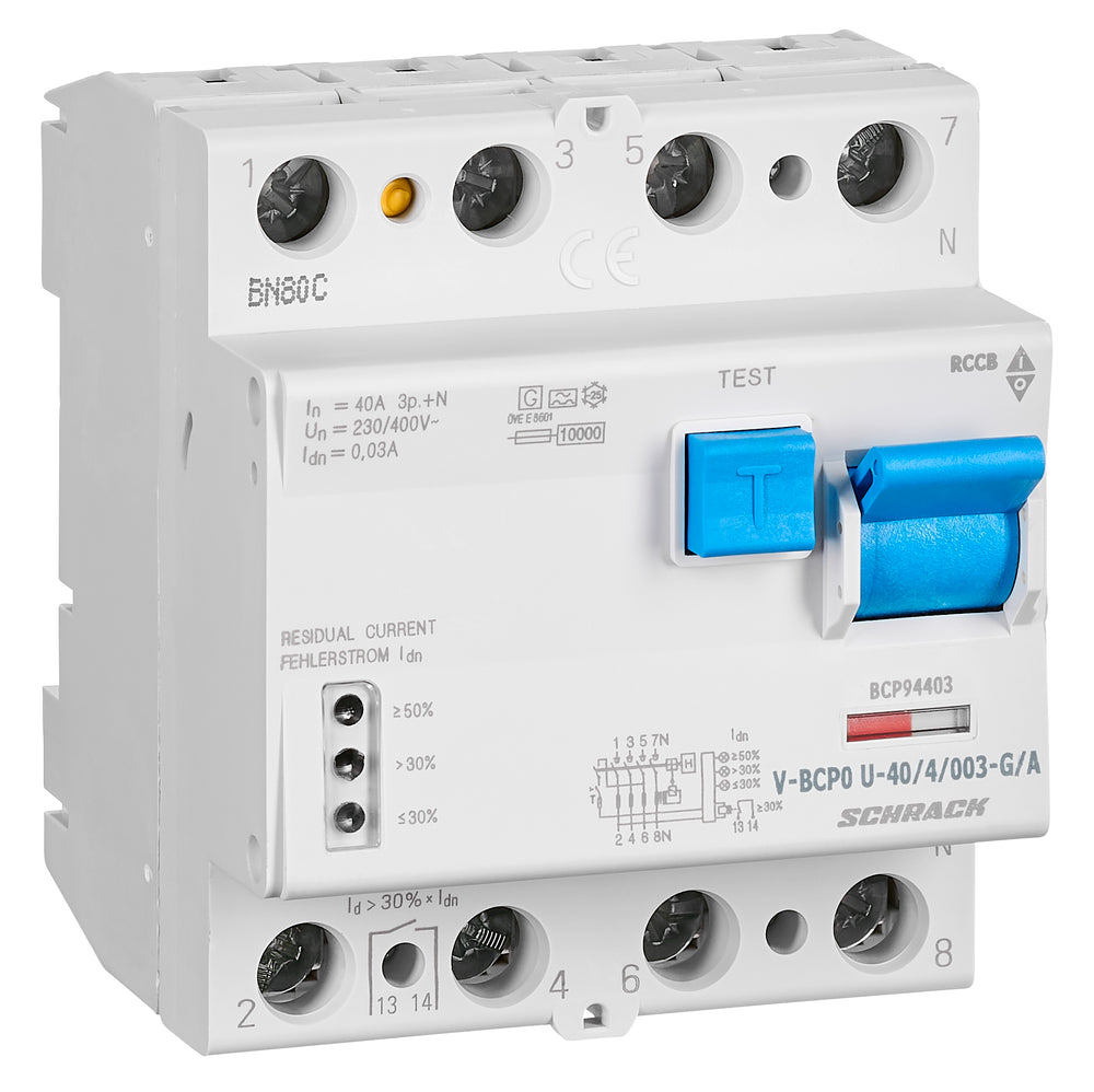 - CAD electrical description: 40A/3+N 30mA A, G, U