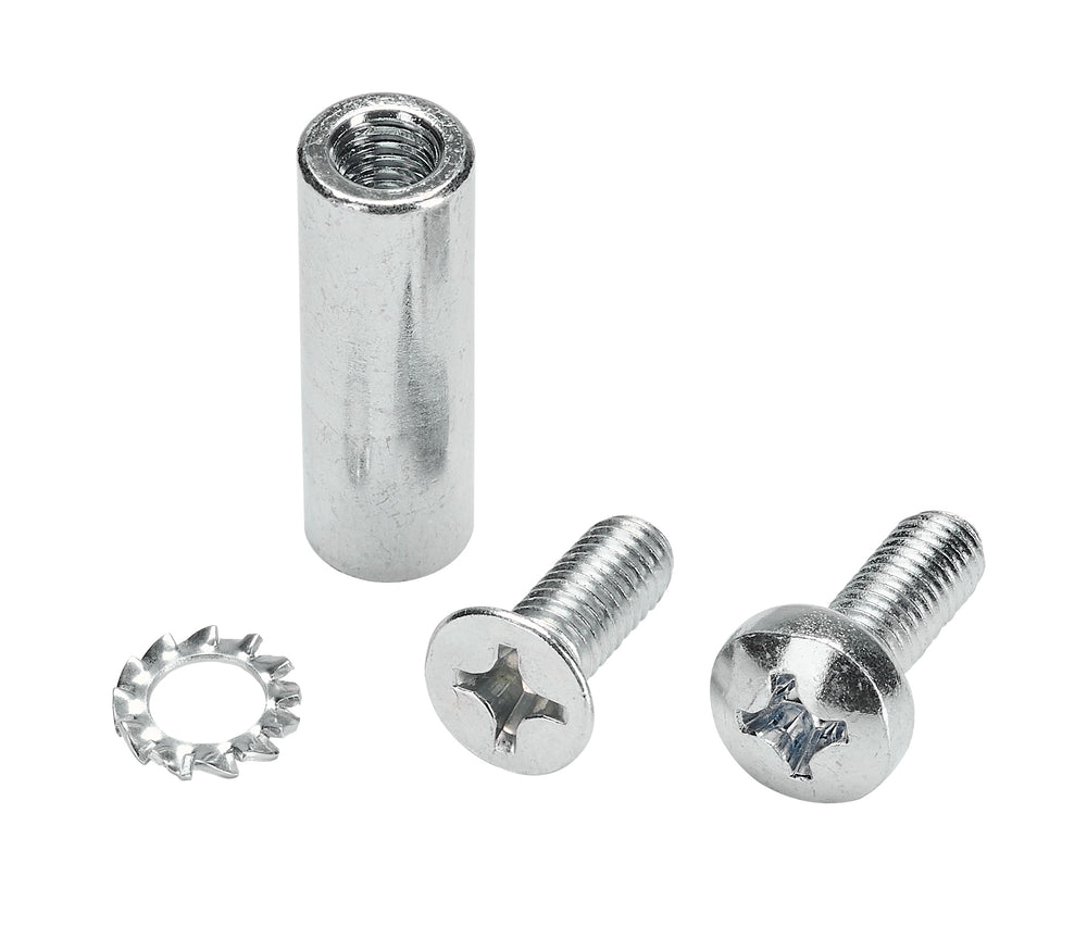 bestehend aus: 1x Senkschraube M6x16; 1x Fächerscheibe 6,4mm; 1x Rundmutter M6; 1x Linsenblechschraube 4,8x13mm