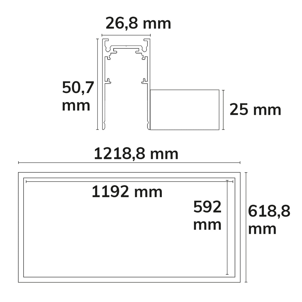 Track48 Leuchtenrahmen H50, Innenformat 592x1192mm, weiß, exkl. Trafo, exkl. Montageclip/Seilabh. ist auf Lager und wird versandt, sobald es wieder verfügbar ist