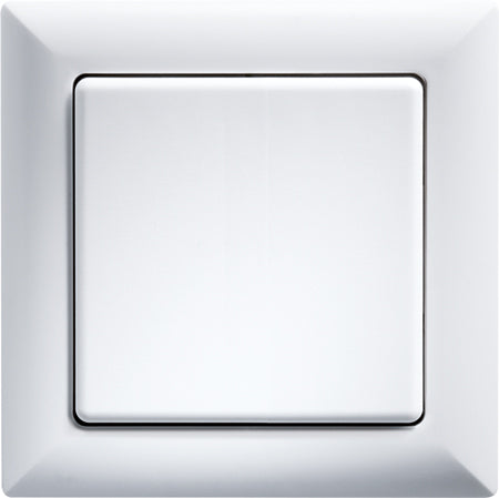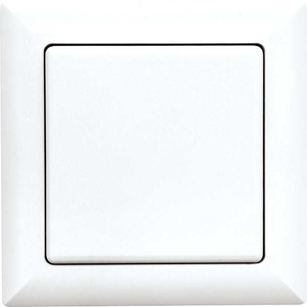 Funk-4-Kanal-Taster, 80x80mm außen, Rahmen-Innenmaß 55x55mm, 15mm hoch. Erzeugt die Energie für Funktelegramme selbst bei Tastendruck, daher ohne Anschlussleitung und kein Stand-by-Verlust.