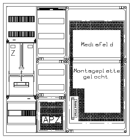 Zählerverteiler 1xZF, H=1100 B=1050 T=210mm, 1xVF, APZ, 2xMF
