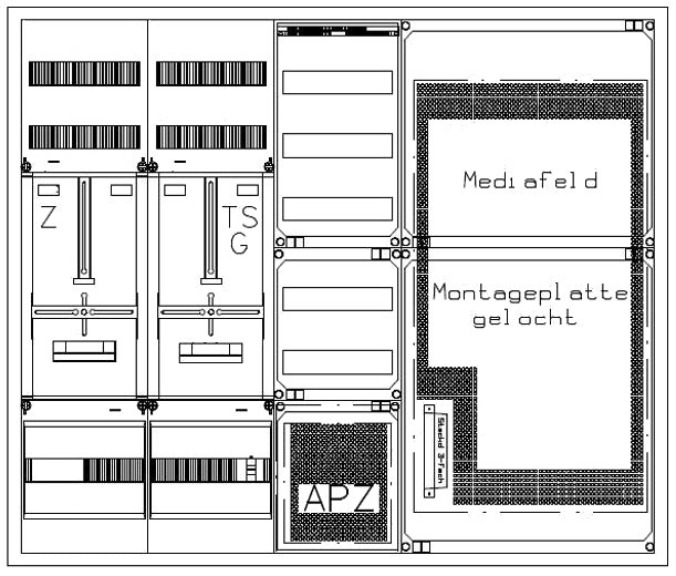 Zählerverteiler 1xZF, H1100 B1300 T210mm, 1xTSG,VF,APZ, 2xMF
