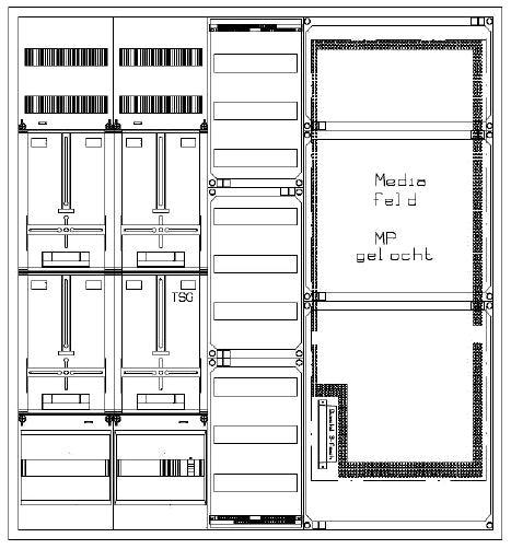 Zählerverteiler 3xZF, H1400 B1300 T210mm, 1xTSG, 2xVF, 4xMF