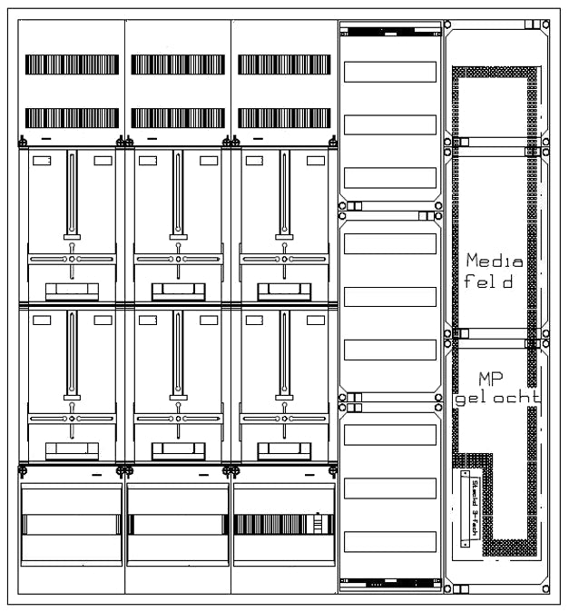 Zählerverteiler 5xZF, H1400 B1300 T210mm, 1xTSG, 2xVF, 2xMF